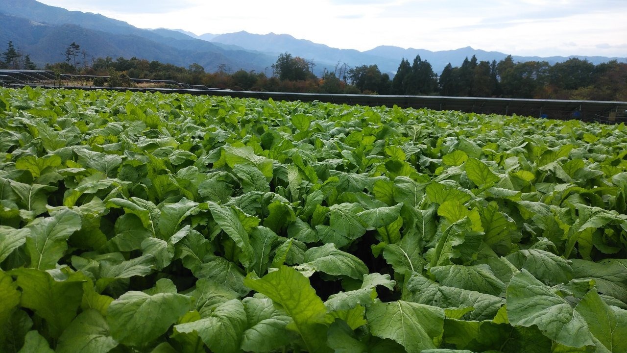 野沢菜は、聖高原にある農場で無農薬で育てています。